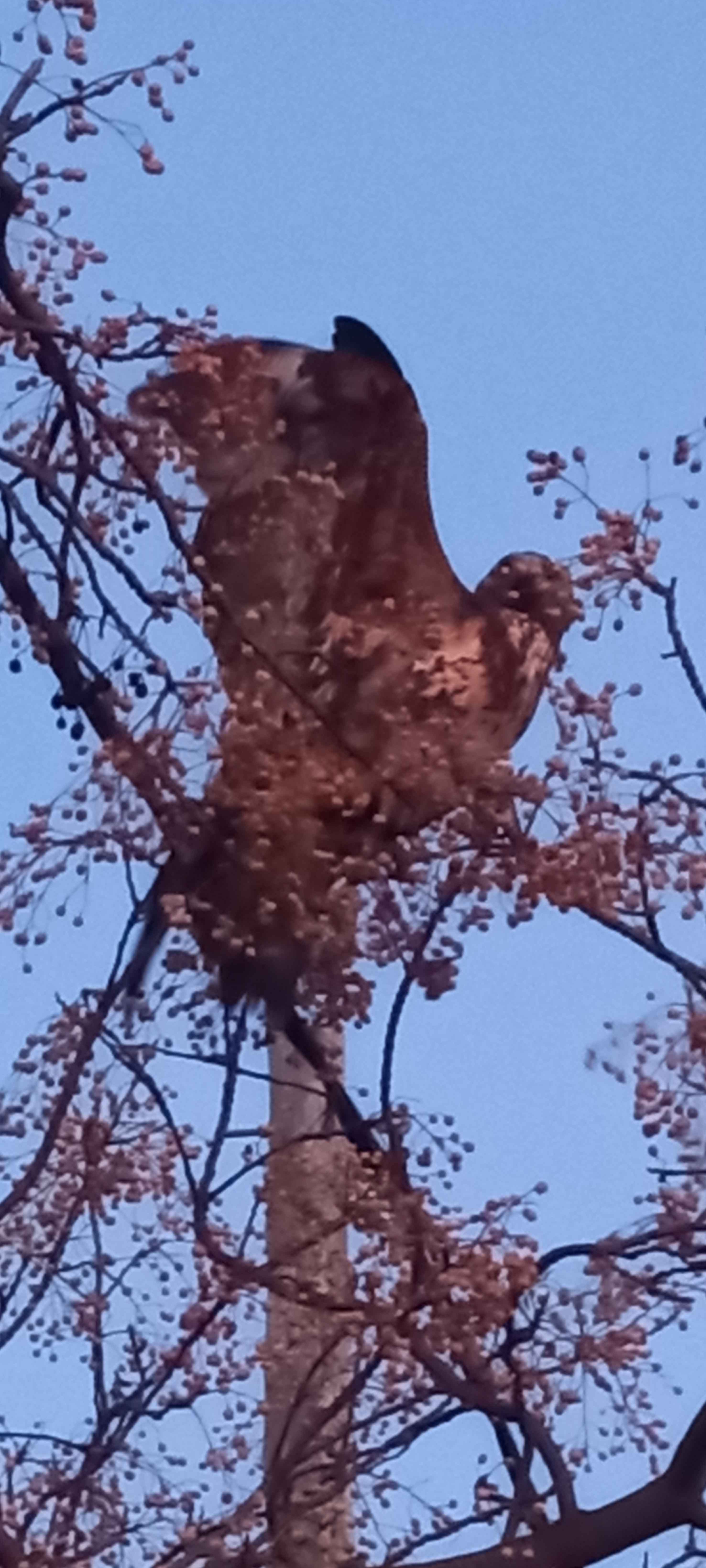¿Es un comportamiento extraño? La verdad que estaría bien ubicada cerca de mucha comida, palomas por doquier, de todos los colores y tamaños, agua en las fuentes y arboles altos que le permitan perchar para dormir, teniendo en cuenta que es un ave de alrededor de un año (por la coloración de sus plumas), el ser bastante confiada y dispersarse de su lugar de origen tampoco es extraño, es un ave rapaz, solitaria que se alimenta principalmente de mamíferos medianos como roedores, pero también de lagartijas, culebras, aves y algunos invertebrados .