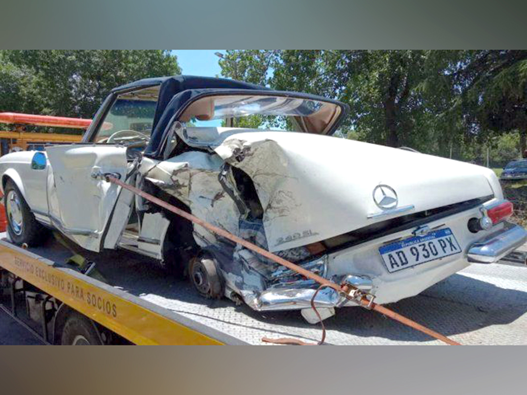 Se trata de Mercedes-Benz “Pagoda” recién restaurado que fue embestido tras perder una rueda en plena autopista.