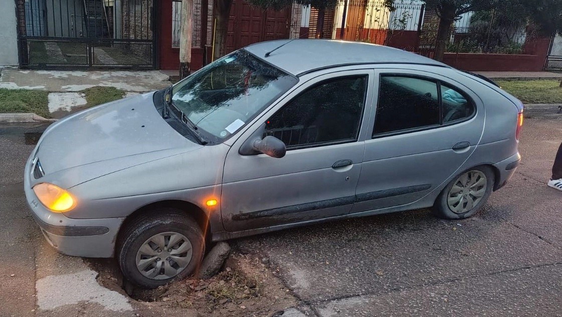 El lateral de un Renault Megane ocupado por un hombre se hundió en la calle Schmidt y Andrada en el barrio Colonia Escalante de la capital pampeana aunque afortunadamente, sin lesiones para el conductor.