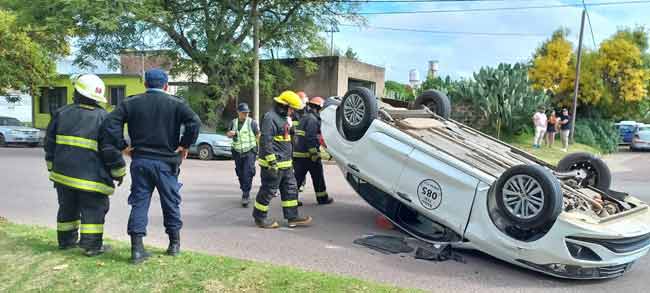 El conductor de un “Radio Taxi” se descompensó al volante y no pudo evitar impactar violentamente una columna de alumbrado público, tras lo cual el vehículo volcó espectacularmente, culminando su marcha en el asfalto, pero con las cuatro ruedas hacia el cielo.