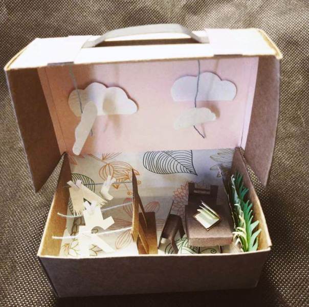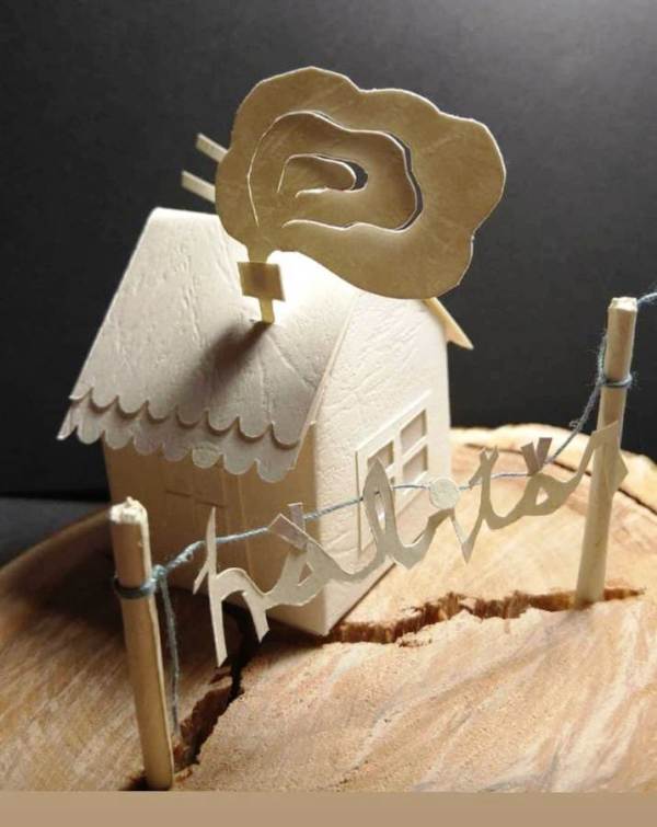 La entrevistada comentó que en plena pandemia “es donde potencié el saber sobre la temática, me puse a investigar sobre el papel y comencé a hacer casitas, ya que esto de tener que estar adentro de nuestra casa fue un modo de ir pensando qué tipo de vivienda podía armar con un papel, entonces fui elaborando la estructura e investigando para construir cosas pequeñas para ponerle adentro, la silla, la mesa, todo en miniatura” y añadió “el desafio es también ir creando los elementos lo más pequeños posible, o si esa casa puede tener dos pisos, una escalera, en fin, la acción principal para mí es jugar”.