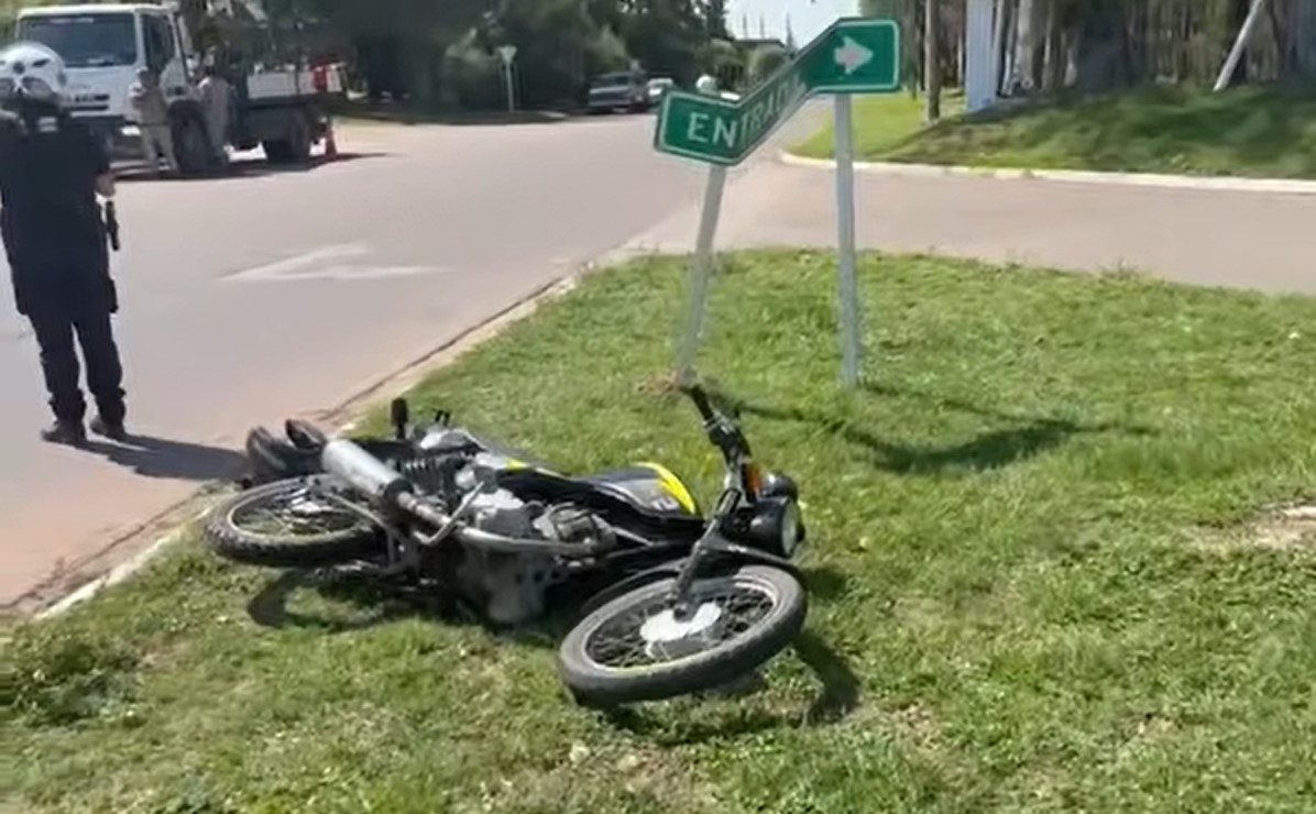 Como consecuencia, la motociclista terminó colisionando contra un cartel de señalización vial ubicado en el espacio verde de la rotonda, el cual quedó doblado por el impacto. Tras el choque, la joven cayó al suelo y quedó tendida en el lugar.