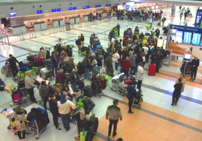 Más de 200 personas permanecían varadas en el aeropuerto internacional de Ezeiza a la espera de un avión proveniente de Caracas, que fue desviado a Bolivia luego de la polémica de la aeronave que está inmovilizada desde hace una semana en Buenos Aires.
