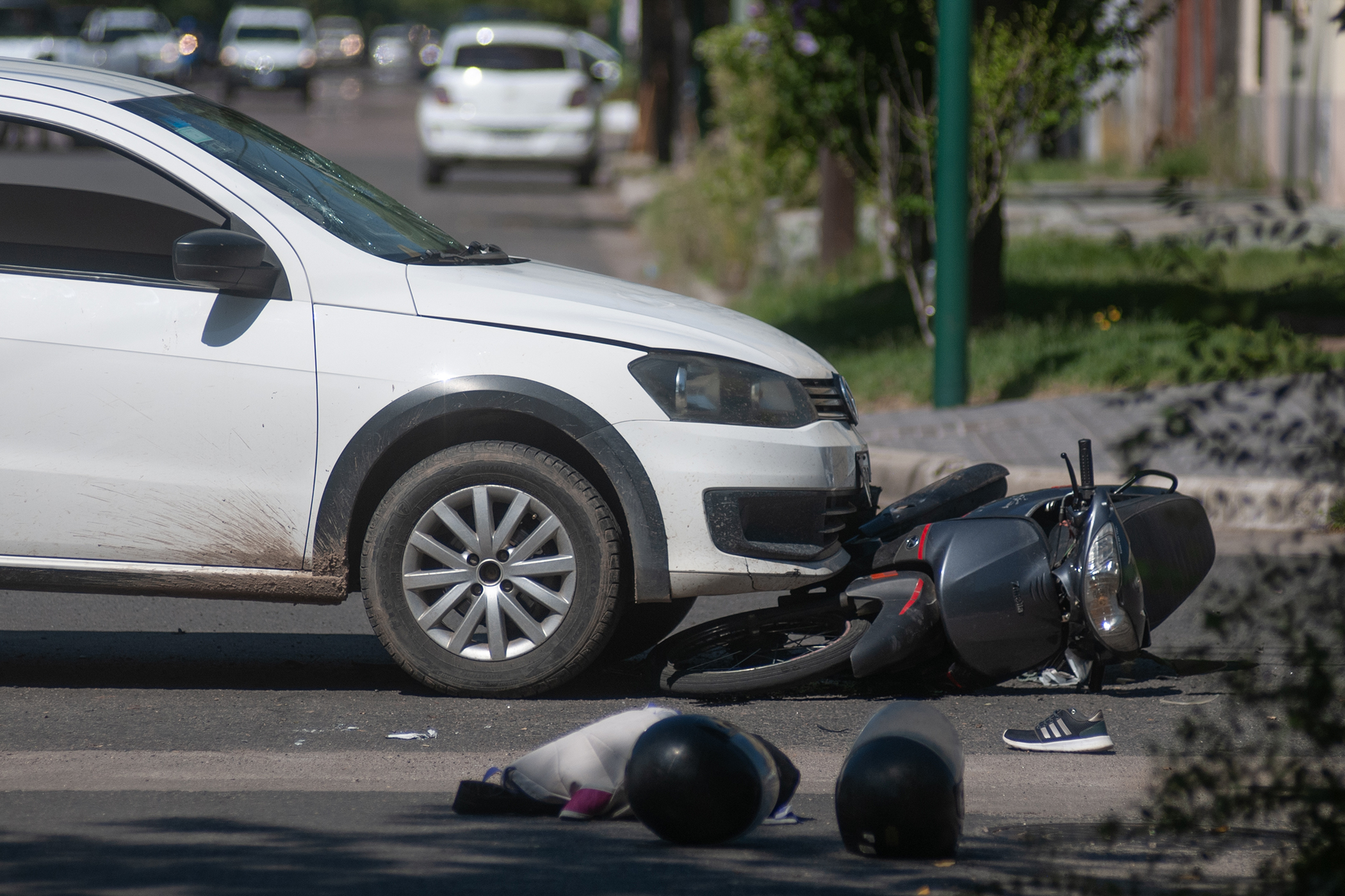 Por causas que aún se tratan de establecer, una camioneta Volkswagen Saveiro, que circulaba por calle 26 en sentido sur a norte, colisionó con una motocicleta Zanella ZB 110 c.c. que transitaba por calle 23. El impacto fue de tal magnitud que el rodado menor quedó atrapado debajo del vehículo mayor y fue arrastrado varios metros.