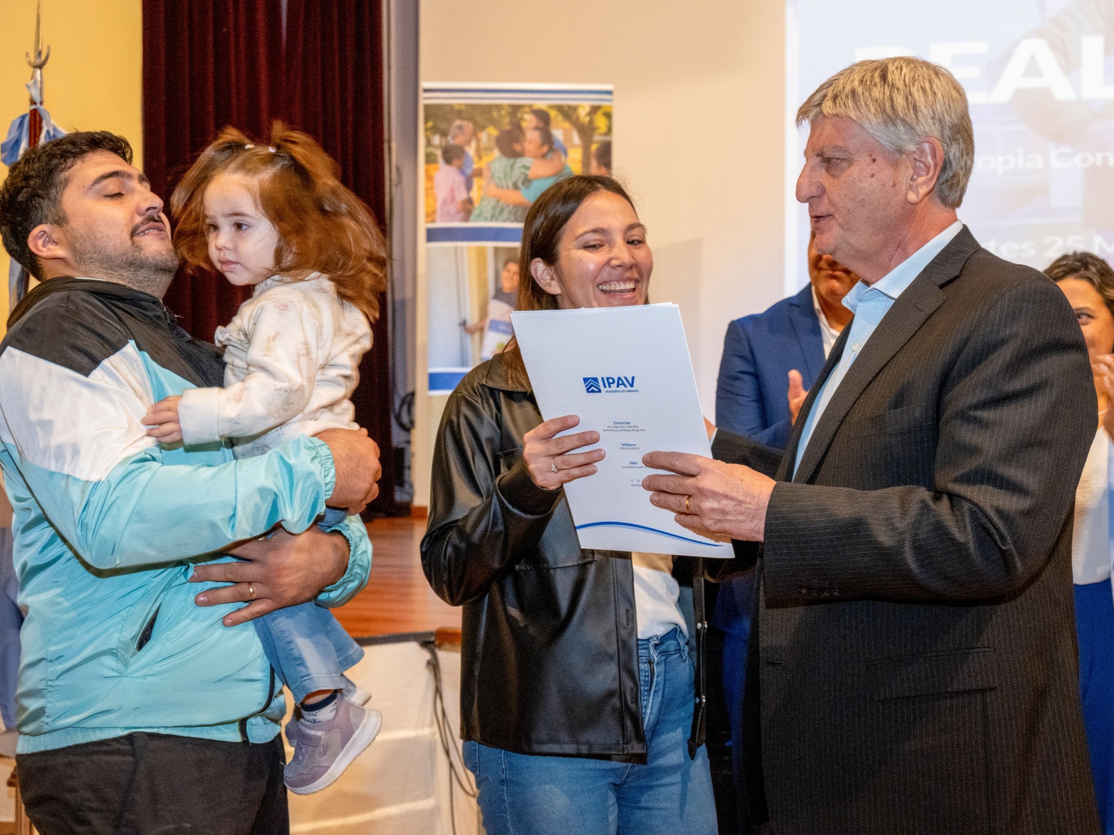 Por cuestiones climáticas el acto se llevó a cabo esta mañana en el Centro Cultural de Realicó, donde Ziliotto llegó acompañado por el intendente Facundo Sola, el vicepresidente primero de la Cámara de Diputados, Hernán Pérez Araujo y la titular del IPAV, Erica Riboyra, entre otras autoridades. Concluido el acto se hizo el tradicional corte de cintas en una vivienda del nuevo barrio.