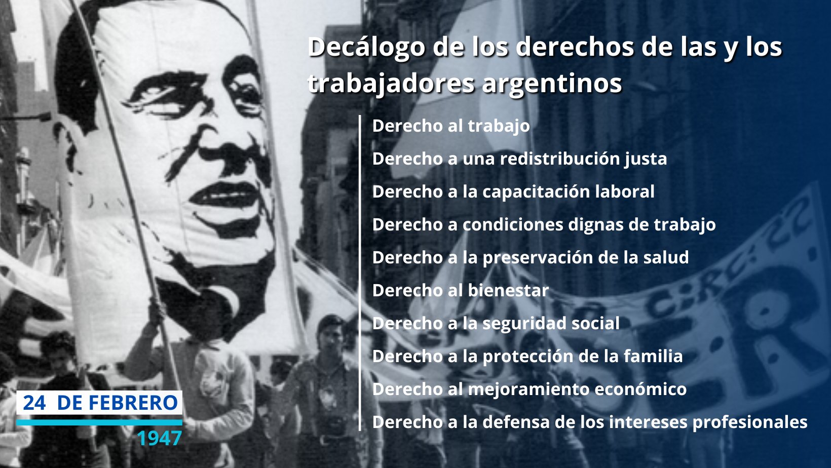 Justo 𝘂𝗻 𝗮𝗻̃𝗼 𝗱𝗲𝘀𝗽𝘂𝗲́𝘀 𝗽𝗿𝗼𝗰𝗹𝗮𝗺𝗼́ 𝗹𝗼𝘀 𝗱𝗲𝗿𝗲𝗰𝗵𝗼𝘀 𝗱𝗲 𝗹𝗼𝘀 𝘁𝗿𝗮𝗯𝗮𝗷𝗮𝗱𝗼𝗿𝗲𝘀 𝘆 𝘁𝗿𝗮𝗯𝗮𝗷𝗮𝗱𝗼𝗿𝗮𝘀 𝗮𝗿𝗴𝗲𝗻𝘁𝗶𝗻𝗮𝘀. Hoy honramos la visión de quien entendió que la verdadera felicidad del pueblo radica en el respeto y protección de las y los laburantes. Sigamos construyendo juntos un futuro donde el desarrollo de una nación y los derechos de sus trabajadoras y trabajadores caminen de la mano.