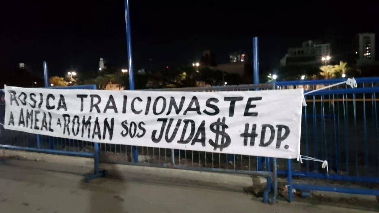 “Rosica traicionaste a Ameal, a Román, sos Juda$ hdp”, rezaba uno de los pasacalles. En otro, la acusación fue aún más explosiva: “Devuelvan los 45 palos de los hierros”, en alusión a presuntas irregularidades dentro del club. Las versiones internas hablan de una fuerte interna entre Riquelme y Rosica, con Jorge Ameal totalmente corrido del día a día.