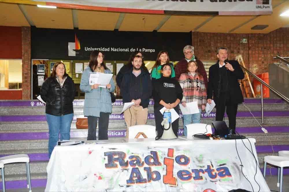 Además de una radio abierta y la presencia de mesas en las que se juntaron firmas de adhesión al pedido de tratamiento de la ley, la Comisión Especial en Defensa de la Universidad Pública leyó un documento en el que dan cuenta de la situación.